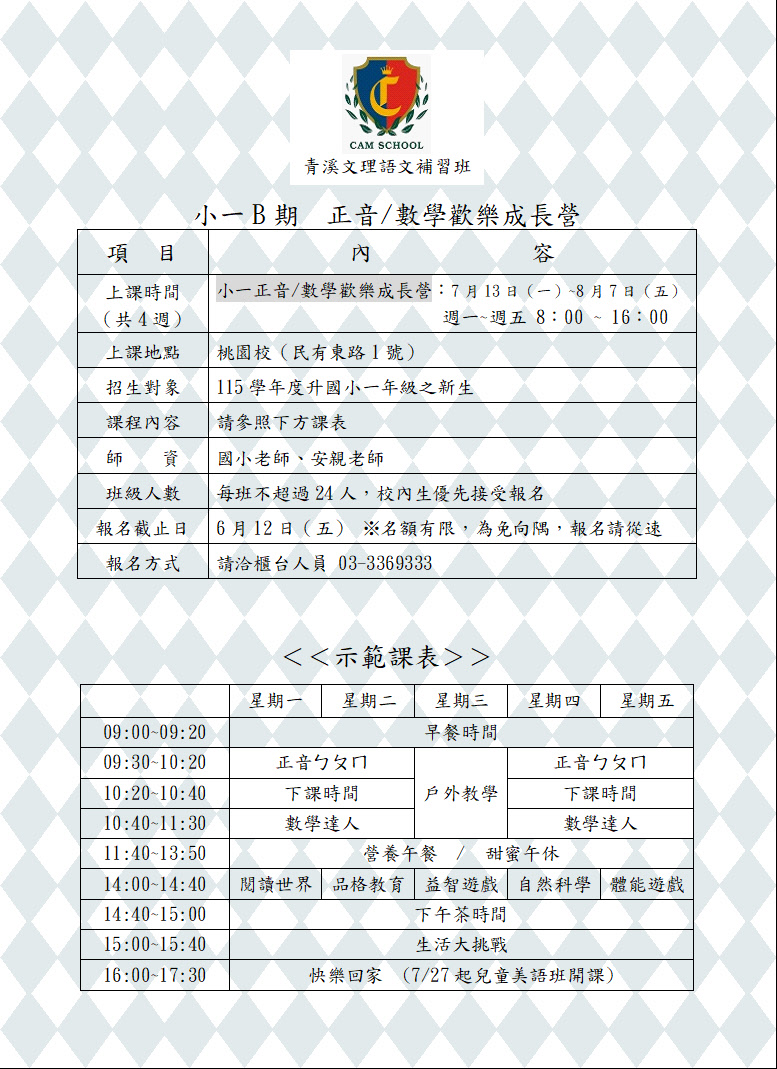 小一B期正音數學先修班